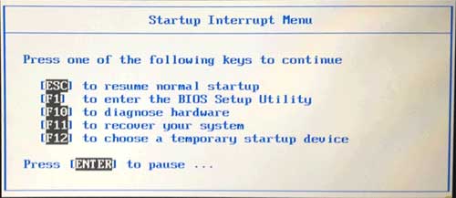 1. Turn on the computer and immediately press the ESC key to display the Startup Menu, and then press the F10 to enter BIOS Setup.