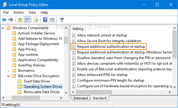 In the right pane, double-click on the “Require additional authentication at startup” the policy.
