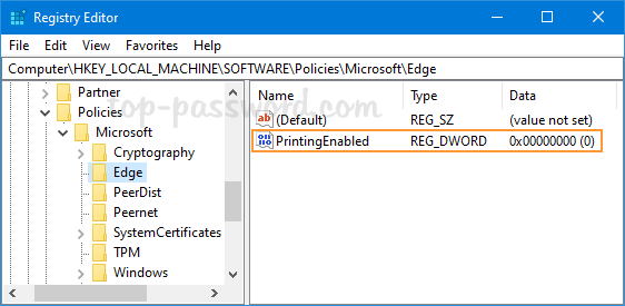 How can I turn off printing in the new Chromium-based Microsoft Edge? Microsoft Edge allows users to print web pages, PDF files, or any other content with the “Print” context menu. If you don’t allow others to print from Microsoft Edge, here is a simple registry trick to disable printing in Microsoft Edge on Windows 10.