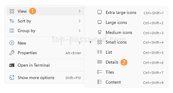- Open File Explorer and navigate to the location of your tagged files. Right-click the empty space and choose View -> Details from the pop-up menu.