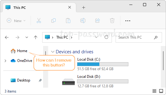 How can I unpin or remove “Home” from the top of navigation pane in File Explorer? Home is the default startup location of File Explorer, where you can access your recent files, frequent pins and Quick Access. If you rarely access the Home tab, you can remove the Home icon in the left navigation pane of File Explorer in Windows 11.