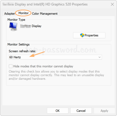 3. Go to the Monitor tab and you can click the “Screen refresh rate” drop-down list to select your desired refresh rate setting.