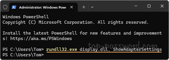2. Copy and paste the following command and press Enter to bring up the Display Properties dialog.