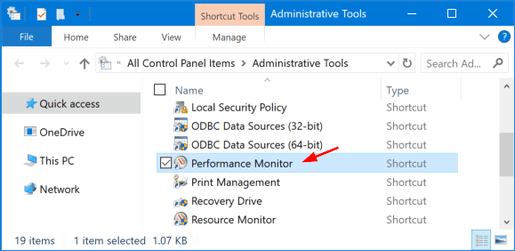In the next window, you can double-click the Performance Monitor shortcut to open it.