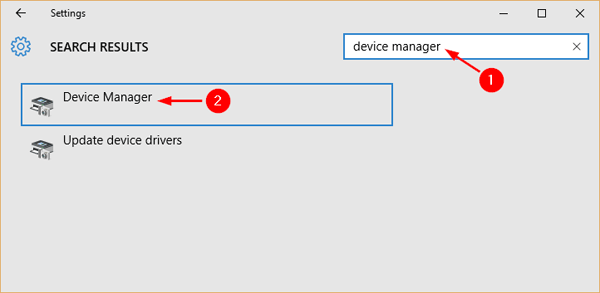 Type device manager in the top-right search box and press Enter, and you can then access Device Manager from the search results.