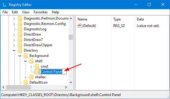 - Close Registry Editor. Now when you right-click any empty space on your desktop or in File Explorer, you’ll see the “Control Panel” shortcut in the context menu. Note that this shortcut wouldn’t appear when you right-click on a folder or file.