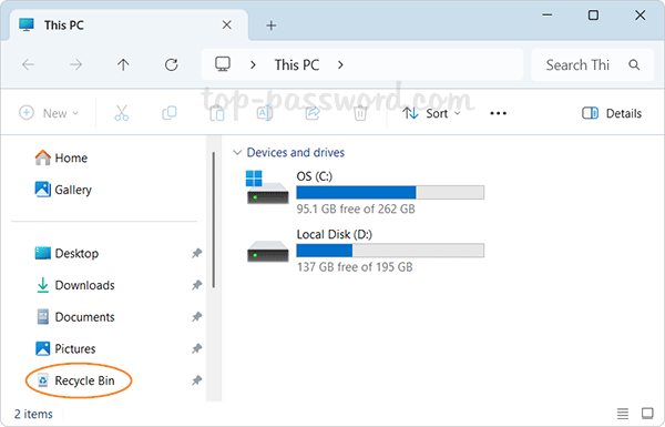 - You’ll immediately see the “Recycle Bin” option appear in the left panel of File Explorer.