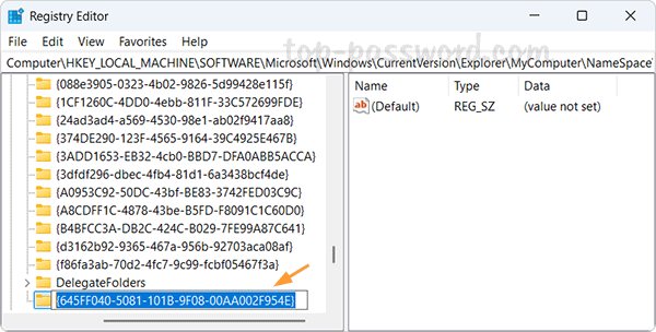 - Give the new key the name: {645FF040-5081-101B-9F08-00AA002F954E}.