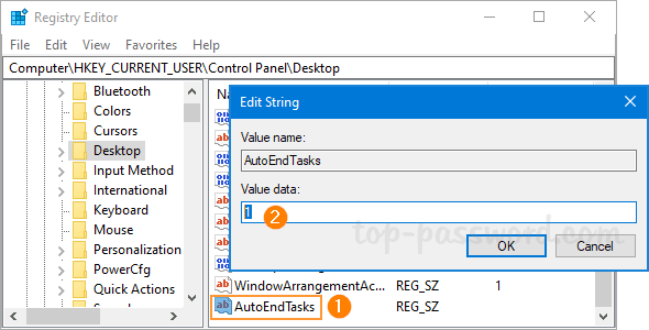 - Name the new string AutoEndTasks, then double-click it and set the value data to 1. Click OK and restart your PC to apply the changes.