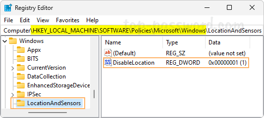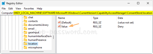 - Open Registry Editor and browse to the location: