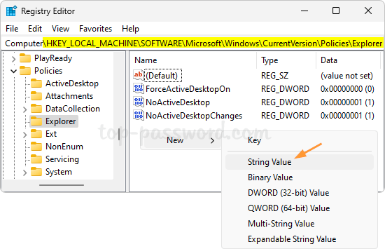- Open Registry Editor and go to the location: