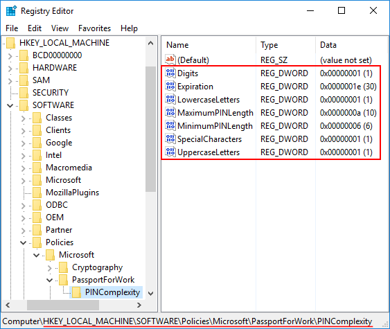 HKEY_LOCAL_MACHINE\SOFTWARE\Policies\Microsoft\PassportForWork\PINComplexity