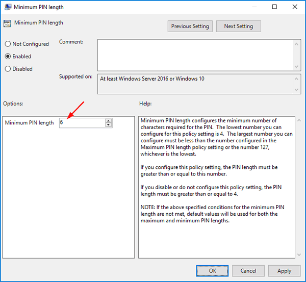 If you are running Windows 10 Home edition, then you’re unable to access the Local Group Policy Editor. In that case you can use the Windows Registry Editor to enable PIN complexity.