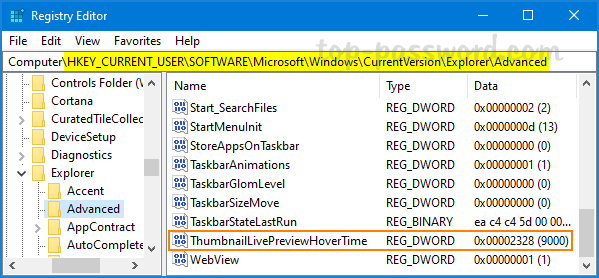 You can use a similar method to disable taskbar full-screen or live preview in Windows 10. Just open Registry Editor and browse to the same location:
