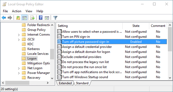 Option 1: Disable Picture Password Sign-in with Group Policy