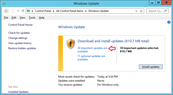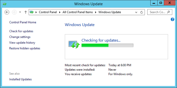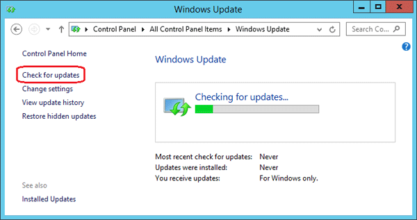 - When come back to the Windows Update window, click on the Check for updates link in the left pane. The search may take some time, depending on how many updates are waiting.