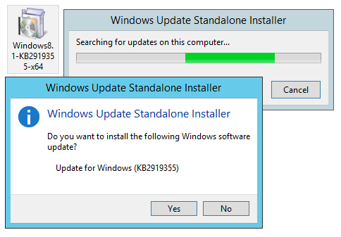 - Now double-click on the update KB2919355 you’ve downloaded and it should be able to be installed successfully.