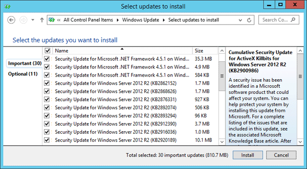 - In the list of available updates, select the update KB2919355, then click Install and you’re done! However, if the update KB2919355 doesn’t appear in the list of available updates, check ALL important updates and click Install.