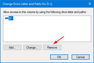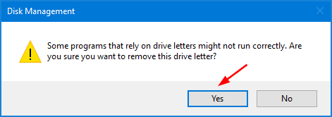 - You are asked to confirm the removal of the drive letter. Click Yes.