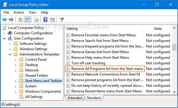Method 2: Using GPO to Hide or Disable All Apps List in Start Menu