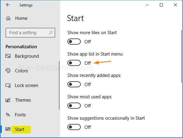 Method 1: Hide All Apps List from Start Menu via the Settings