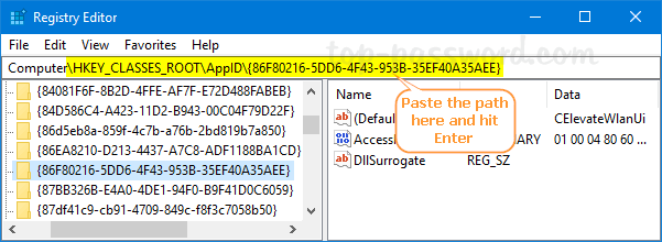 HKEY_CLASSES_ROOT\AppID\{86F80216-5DD6-4F43-953B-35EF40A35AEE}. Right-click on the {86F80216-5DD6-4F43-953B-35EF40A35AEE} subkey and select Permissions. - Click on Add button.