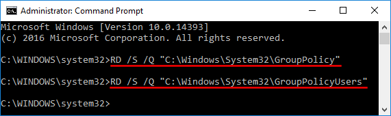 RD /S /Q "C:\Windows\System32\GroupPolicy"
