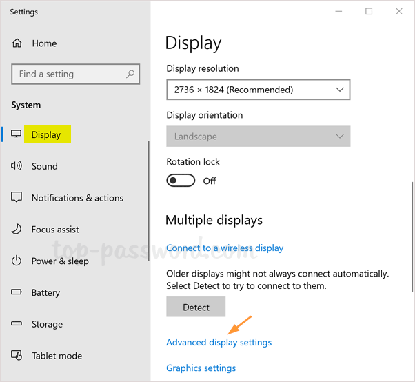 - Click on the “Advanced display settings” link on the right side of the Settings window.