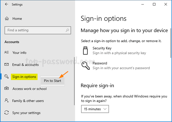 - Open Windows 10 Settings app and navigate to a specific settings page. On the left, right-click any settings tab you want to pin on the Start Menu. When the “Pin to Start” popup menu appears, click on it.