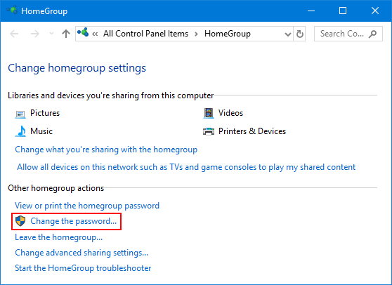 - Under the “Other Homegroup actions” section, click the “Change the password” link.