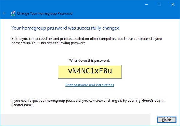 - Now your HomeGroup password was successfully changed. Now you can write down it and close the wizard.