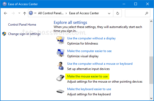 2. Scroll down to the “Explore all settings” section and click on the “Make the mouse easier to use” link.