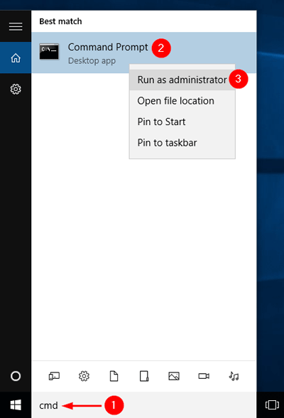 Click the Cortana Search box in the taskbar, and then type cmd. Click Command Prompt from the search result to launch a non-elevated Command Prompt.
