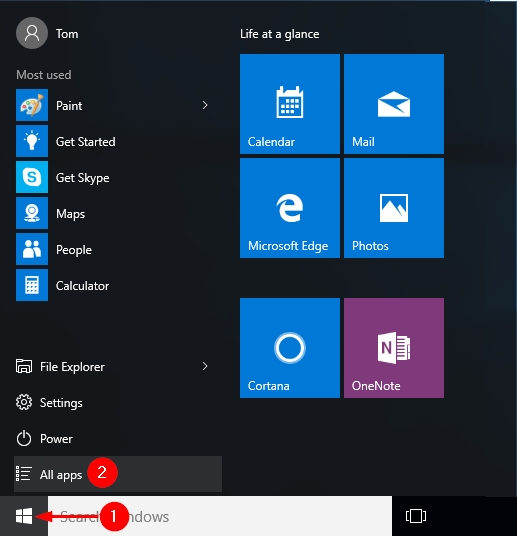 Click on the Start button, and then click All apps at the bottom of the Start Menu.