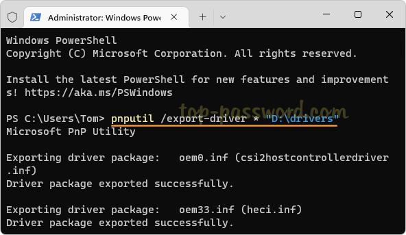 D:\DriverBackupwith the folder you created for saving the exported drivers.