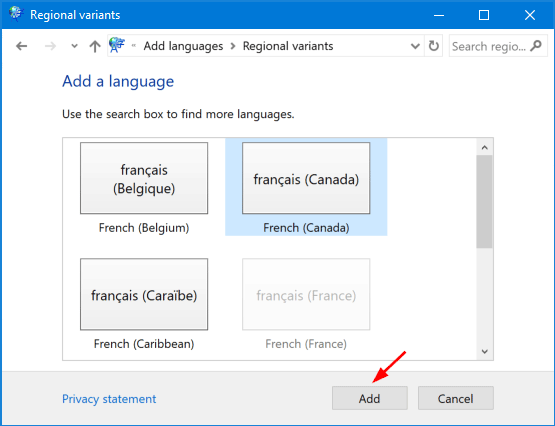 - It will show languages that are available to be installed on your PC. Choose the language you want to add.