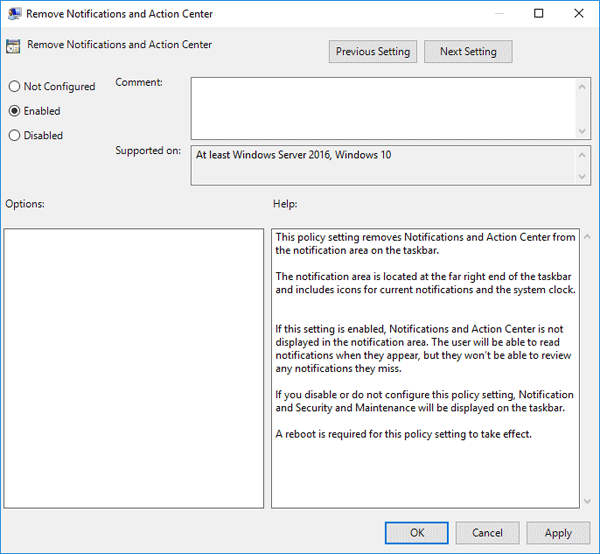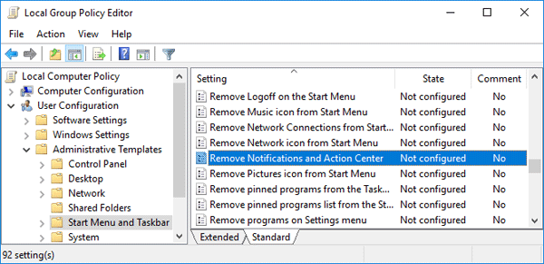 Method 2: Disable Windows 10 Action Center Using Group Policy