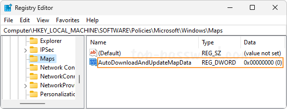 Method 3: Disable Automatic Map Updates in Windows 11 via Registry Editor