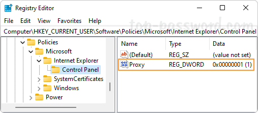 3. Close Registry Editor and reboot your computer. It will prevent users from changing the proxy settings using the Settings app or through the Internet Options.