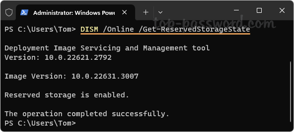 - Before getting started, open the Windows Terminal as administrator and then run the following command to check whether the reserved storage is already enabled or disabled on your system.