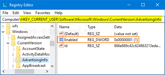 HKEY_CURRENT_USER\Software\Microsoft\Windows\CurrentVersion\AdvertisingInfo