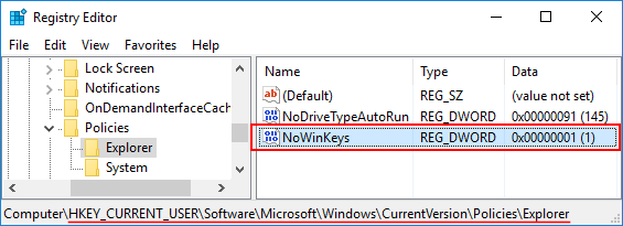 - Rename the newly created entry as NoWinKeys and set its value to 1.
