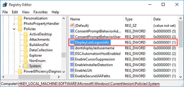 5. Close Registry Editor and restart your computer. The next time you log into your Windows account it will display last interactive logon information on the welcome screen.