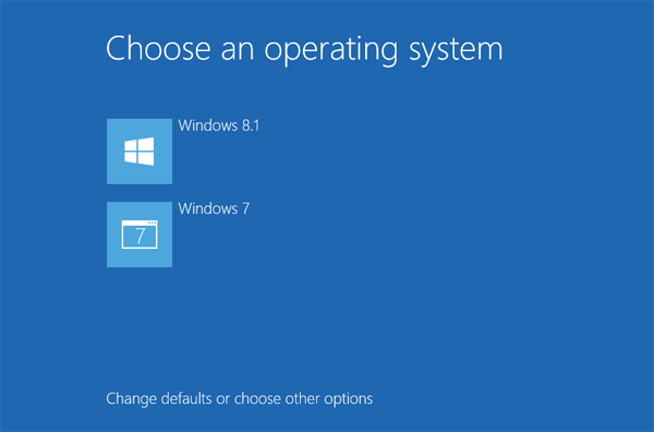 - When the installation is complete, Windows Setup will reboot your system one final time and you will then see the new Windows 8.1 style dual boot screen shown as below. As you can see, Windows 8.1 will automatically launch in 30 seconds if you don’t choose Windows 7.