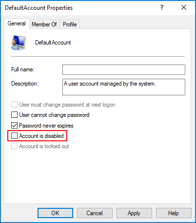 DefaultAccount is a built-in local account that exists on every Windows 10 installation. By default, it is disabled and doesn’t show up on Windows 10 sign-in screen. What does DefaultAccount use for? DefaultAccount was created and used by the system, and it’s a member of the System Managed Accounts Group. We can rename this account but unable to delete it.