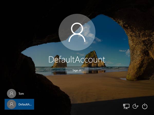 Now reboot your computer and you can see the DefaultAccount user show up at Windows 10 login screen.