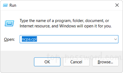 1. Press the WIN + R keys together to launch the Run box, type ncpa.cpl and press Enter to open the Network Connections window.