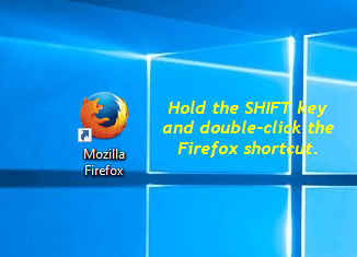 Hold down the SHIFT key, and then double-click the Firefox shortcut on your desktop.