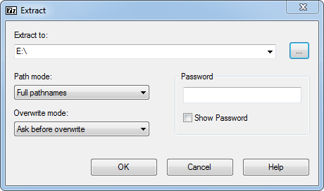 2. When the Extract dialog box appears, click on … button to select the root path of your portable hard drive. Click OK.