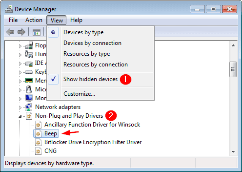 - In the left pane, click on Non-Plug and Play Drivers to expand it, then double-click the Beep device.
